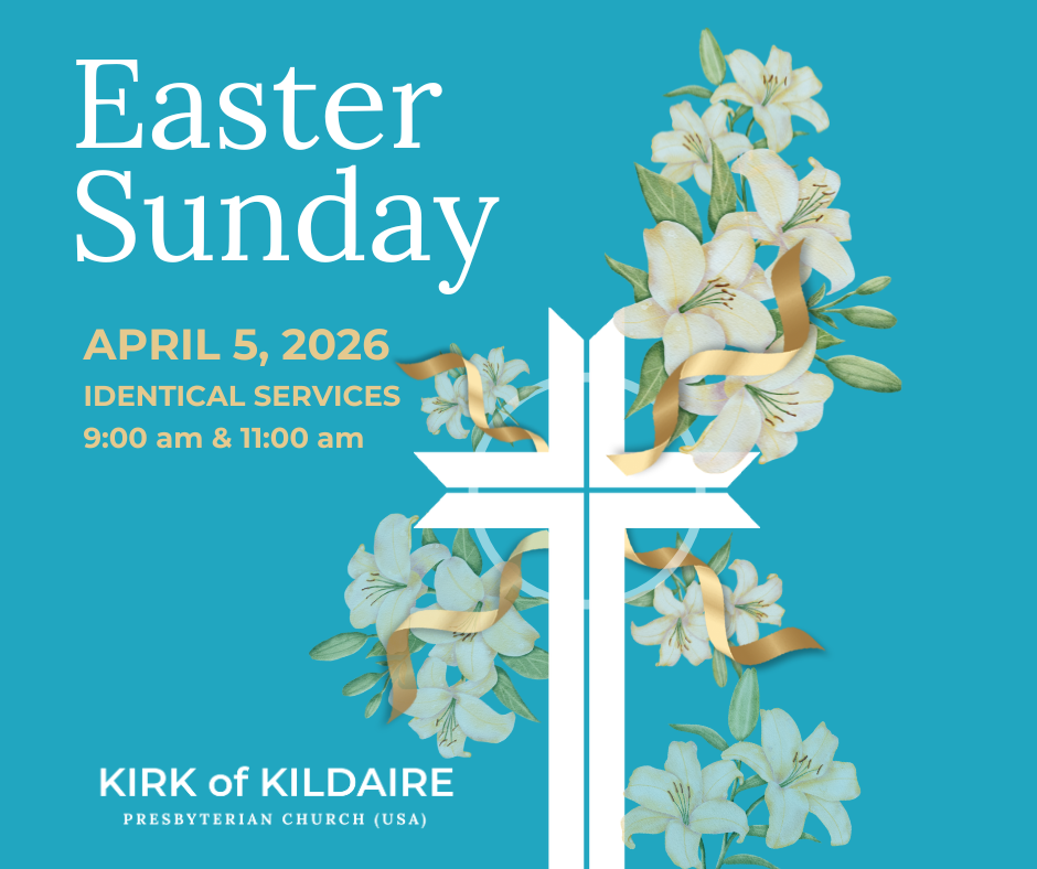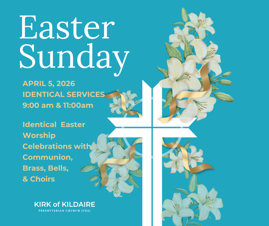 Easter is our defining moment as Christians – the celebration of the Resurrection of Jesus Christ! Celebrate Easter with us at the Kirk of Kildaire on Sunday, April 5th. We will worship at 9am and 11am with two identical worship services filled with the sounds of brass, bells and choirs. Both services will also offer Communion. All are welcome!
