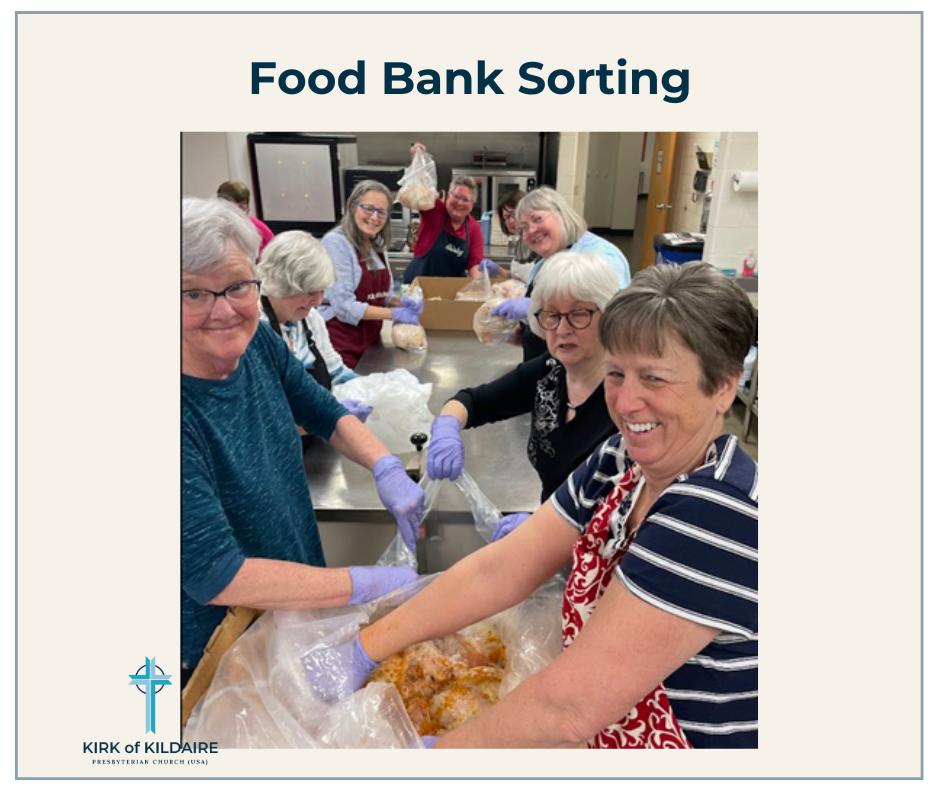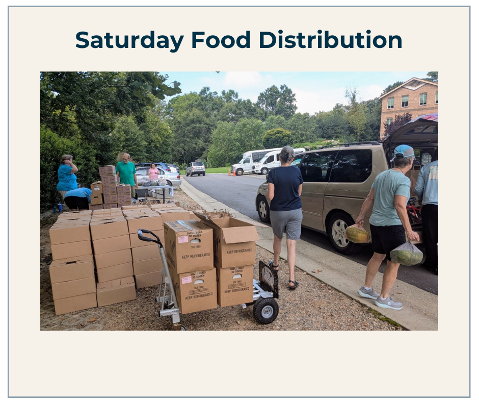 Kirk volunteers gather regularly to unload, sort, and store items brought in from the Food Bank of North Carolina each week. These items are then available for the Kirk Pantry or Saturday distributions to our neighbors in need. Volunteers are always welcome. Call the church office for more information on how to get involved with this important ministry.